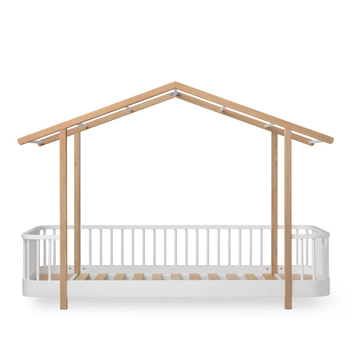 The enclosing sides create a cosy and secure sleeping space. For increased safety at night, the bed can be supplemented with a bed guard. The house bed can also be complemented with two different bed canopies, available separately, allowing for a look that reflects the child’s personality and creates an imaginative environment where play and daydreaming can flourish.